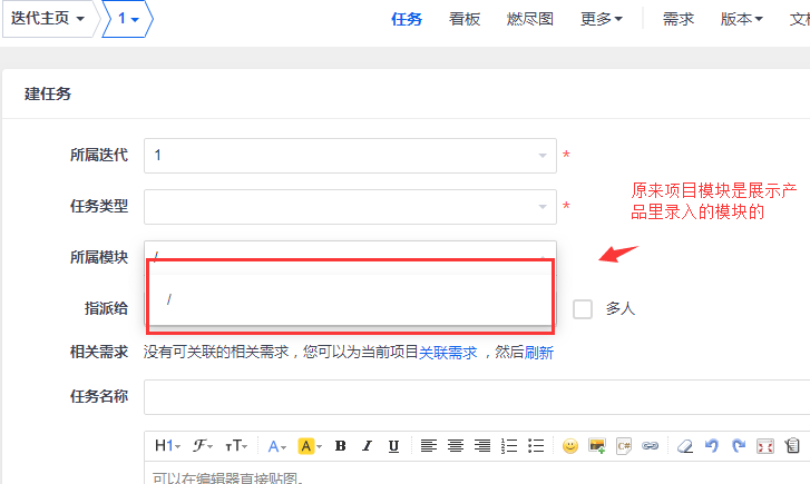 新创建任务为什么无法选择已经关联产品的功能模块了已解决