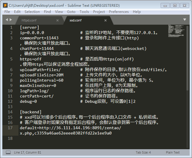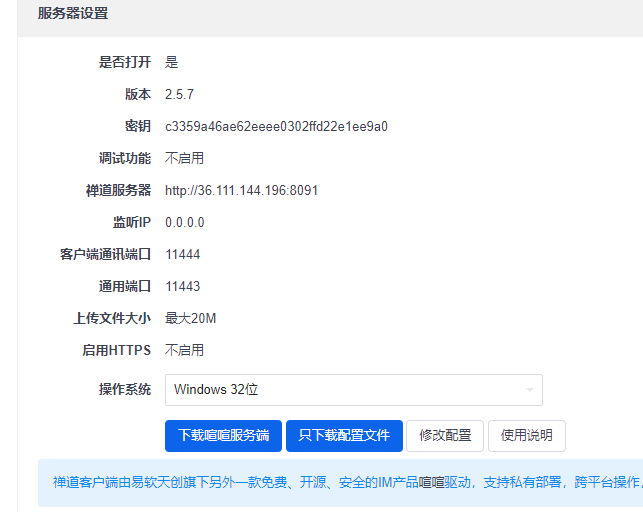 禅道是从10.1版本升级到11.6.3的升级之后在客户端界面下载萱萱服务端,参数设置如下
