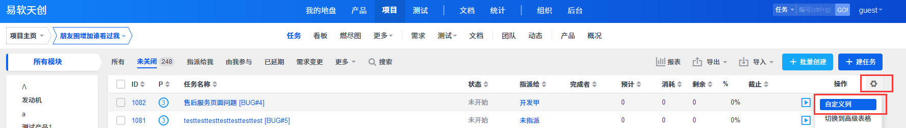 禅道-李锡碧2019-10-28 13:09:18 可以试试项目-任务列表的自定义列功能,看下呢?