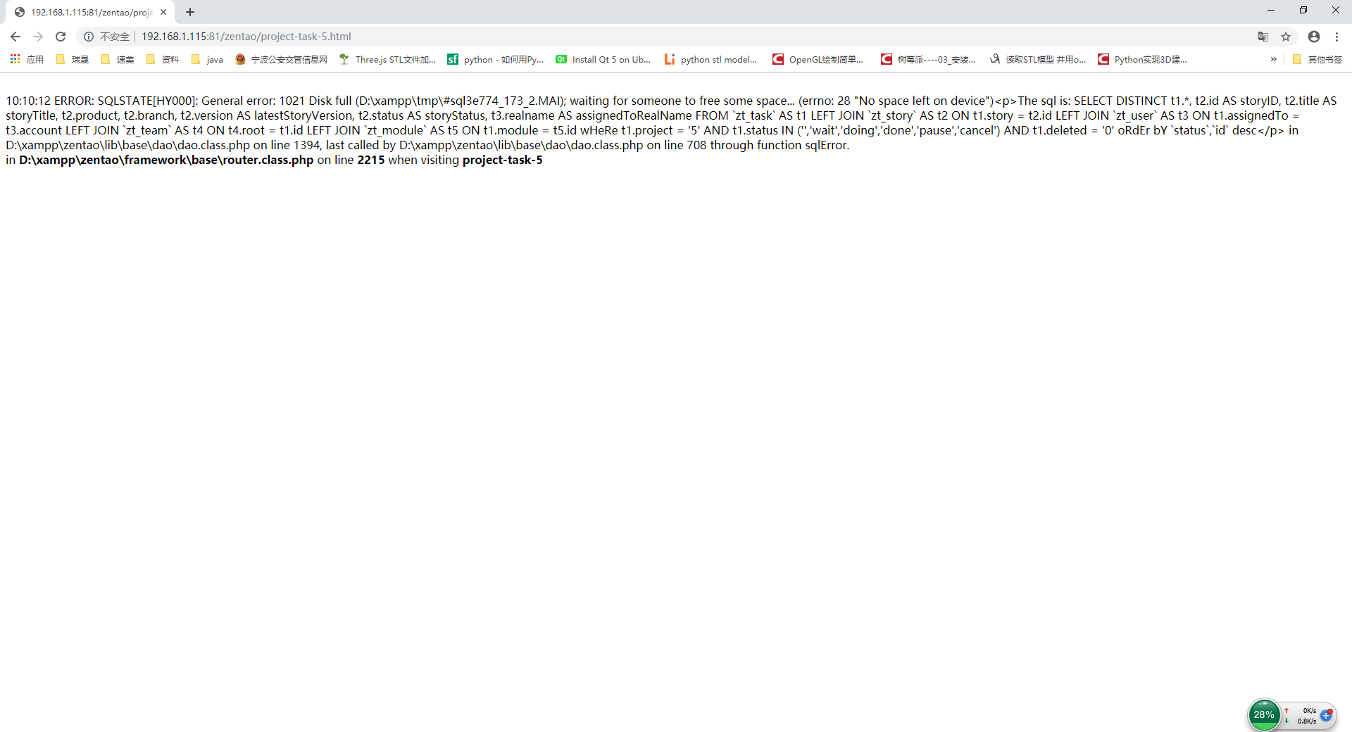 禅道-李锡碧2019-11-27 11:16:51 检查下磁盘空间,提示是空间满了。 |
