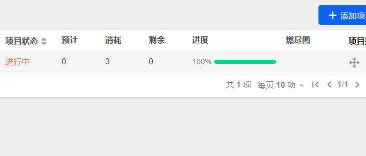 🥂 项目进度 = 任务工时总消耗 /(任务工时总消耗 + 任务工时总剩余) 项目中任务没有剩余工时,说明项目中所有任务都完成了,所以进度是100%。 |