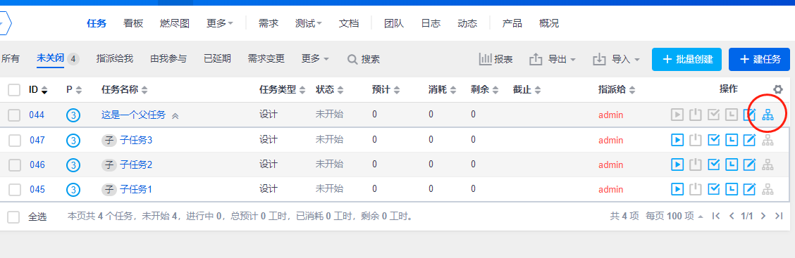 🍪 新版的禅道里是有父任务、子任务的,在任务列表里有子任务的按钮,可以添加。 相关文档: http://www.zentao.net/book/zentaopmshelp/86.html 禅道下载链接: http://www.zentao.net/download.html