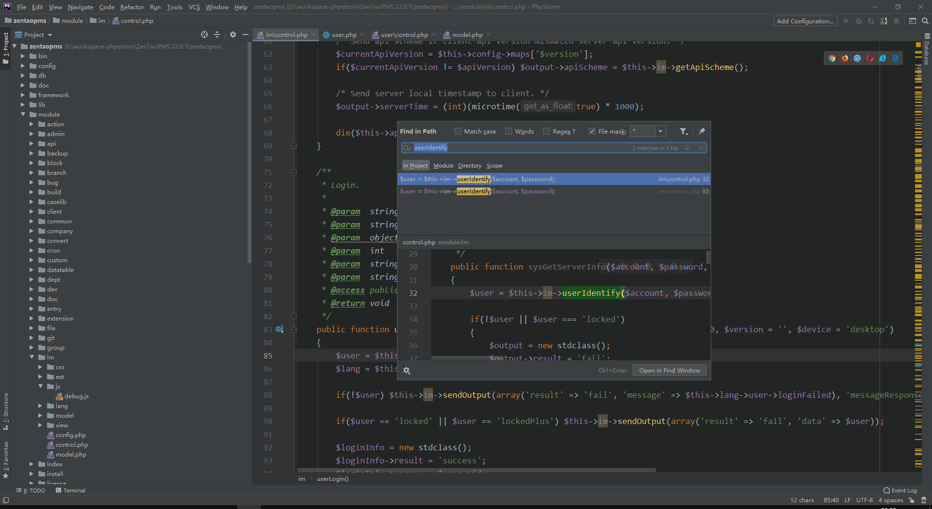 关于源代码module/im/control.php查找不到userIdentity方法已解决