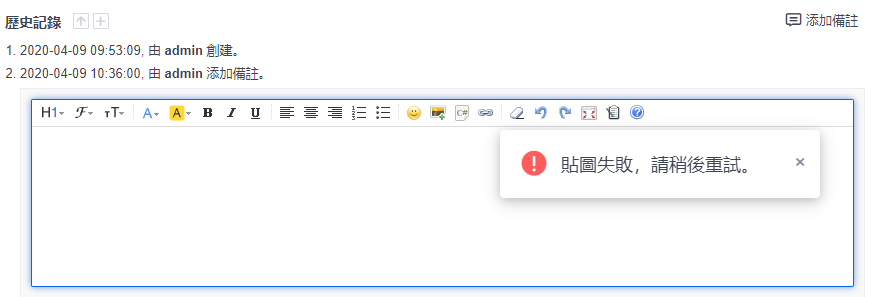 在富文本编辑器里使用贴图功能出现“ 貼圖失敗,請稍後重試。”
