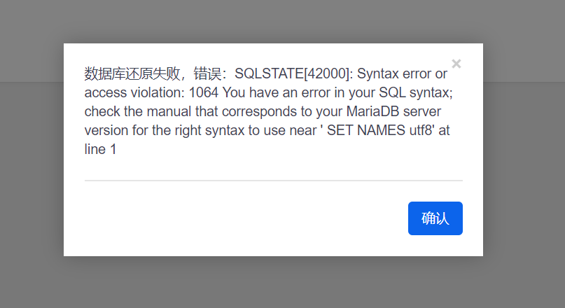 你好,原来的服务器禅道版本为11.7,docker环境,我在新服务器起了同样版本的docker,把老禅道备份好的文件拷贝到新的禅道进行还原,报了一个数据库错误