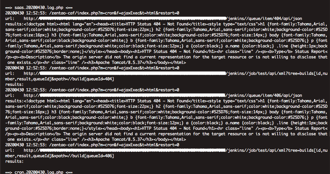 139.224.22.151 - - [30/Apr/2020:13:24:56 +0800] "GET /jenkins//queue/item/406/api/json HTTP/1.0" 404 1047