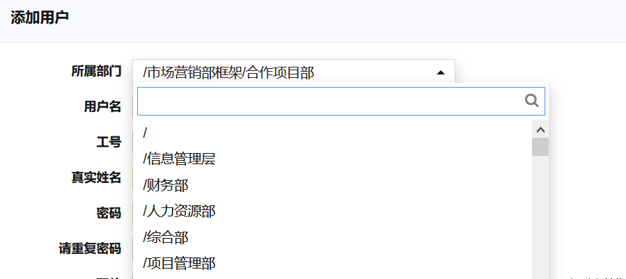 新建用户界面,部门下拉菜单选项太多,会遮盖下面,想改成只向上显示,请问修改默认的样式是在哪个文件呢?只发现了all.js和zh-cn.default.css