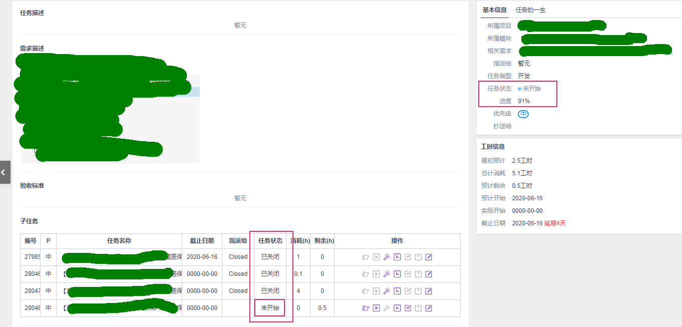 父任务下的子任务有一个是未开始,其他的都已关闭,父任务状态是“未开始”?已解决