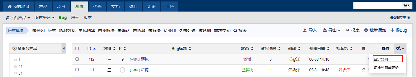 开源版可以自定义bug列表显示的字段吗?怎么定义?已解决