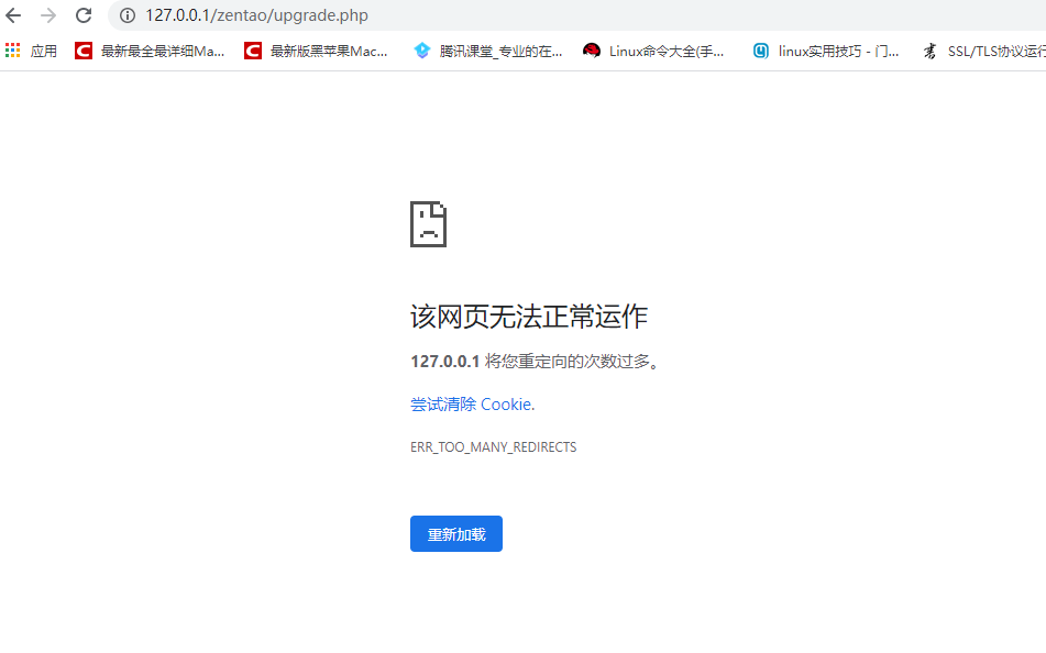 先安装一键安装包9.8.3,然后用源码包12.3.2进行升级,升级成功后,导入9.8.3的数据库备份。然后页面刷新后就打不开了,但是单独连接数据库没问题的。页面自动跳转到此界面