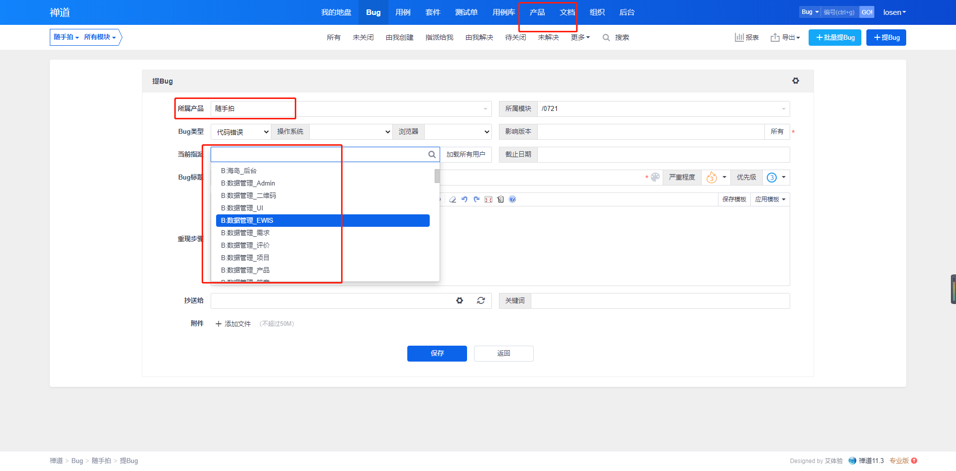 🥂 可以试一下在后台--自定义--工作方式页面选择完整研发管理工具。 提交bug指派人显示规则:选择模块后会显示模块负责人(模块负责人必须在下拉列表中有才能显示,没有模块负责人会显示产品中的测试负责人。)未选择所属项目会列出最近的一个项目的团队成员,选择所属项目后 指派人会显示选择的 项目的团队成员,点击 加载所有用户 按钮显示全部成员。 测试--bug页面下 点击 维护模块 按钮,编辑某个模块,可以设置这个模块的负责人。 点击提bug页面右上方的齿轮按钮可以将所属项目字段显示出来。 |