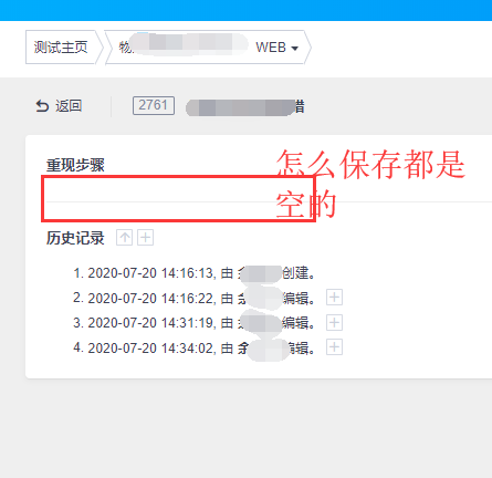2、提BUG时,含粘贴图片的内容保存后,所有内容都被清空,编辑记录也看不出是什么