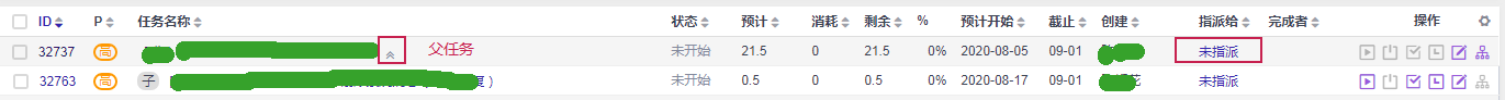 项目--任务列表页上,在“指派给”一栏可以对父任务做指派;