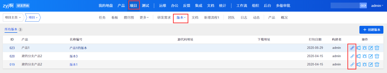 从项目入口进入,点击版本进入版本创建。创建完版本之后没有找到关联需求和Bug的选项。
