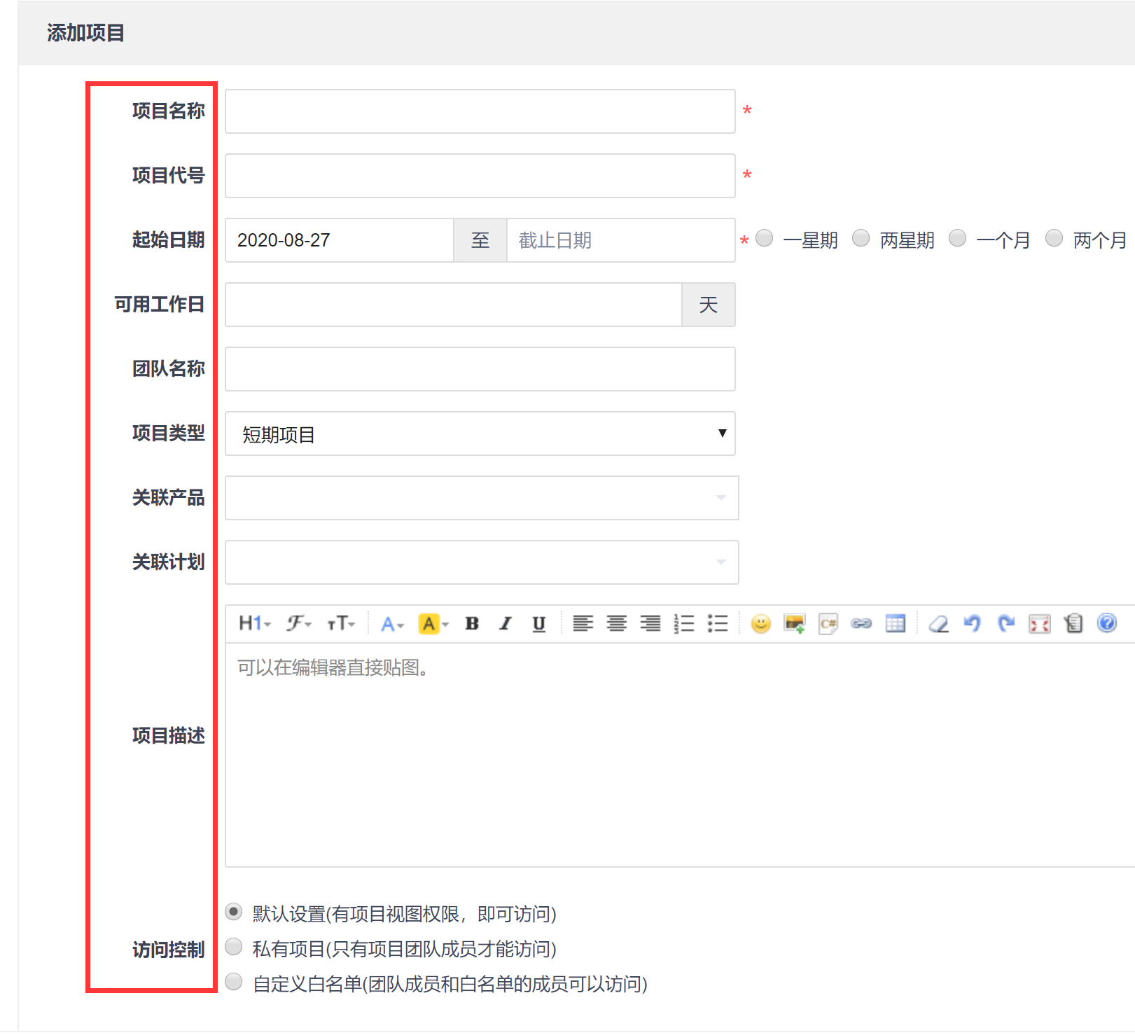 请问添加项目页中的字段,支持自定义配置吗?已解决