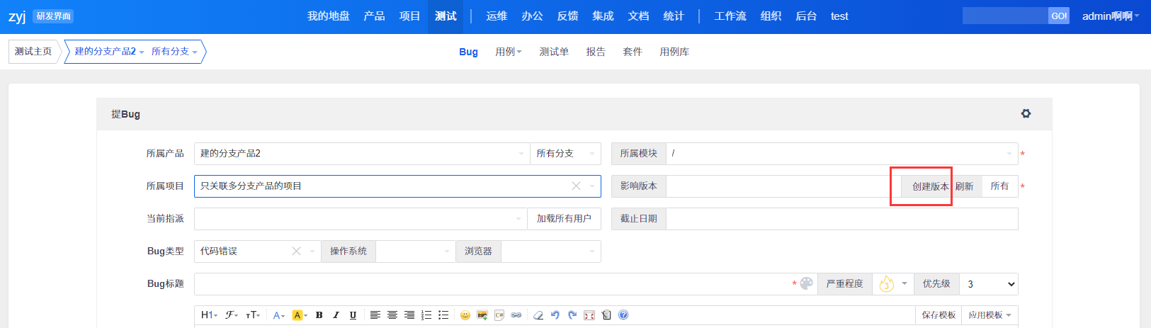 37559禅道在提交bug页面怎么创建版本已解决