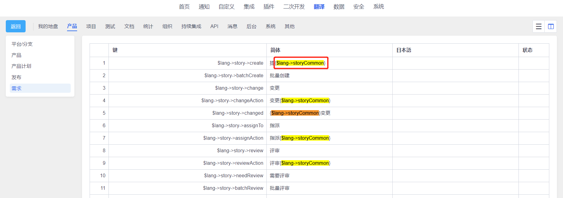 37598{$lang->storyCommon}的翻译应该是在哪里定义的?已解决