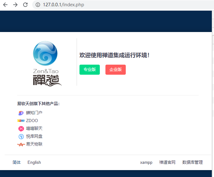 访问禅道之后 专业版后面没有显示试用 点击进入空页面 localhost/pro/已解决