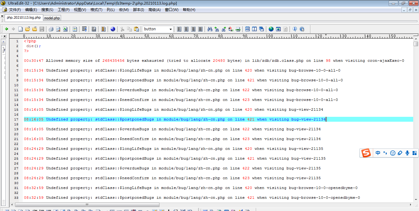 已经把php.ini的大小改成了2048M,但是查看日志还是报错