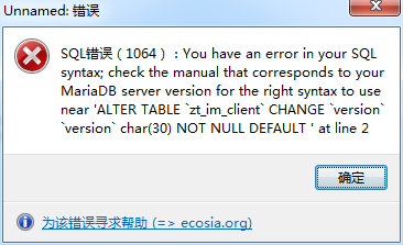 数据升级的时候 使用官方提供的sql语句 提示sql错误已解决