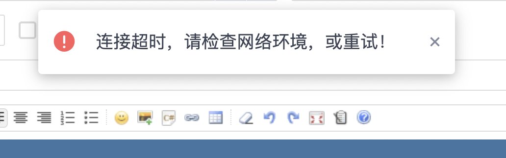 在新建需求和新建Bug时,在描述的时候粘贴了图片后,进行保存,就会报错,“连接超时,请检查网络环境,或重试”。