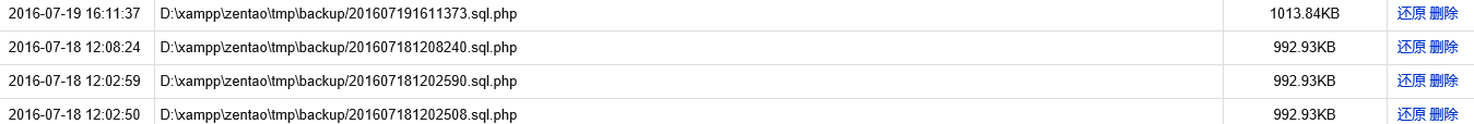 石洋洋2016/07/19 zentao/config/my.php 中debug的值改成true ,后台-备份 点击备份按钮, 看日志文件(zentao/tmp/log/php开头的今天的文件)有什么报错。 |