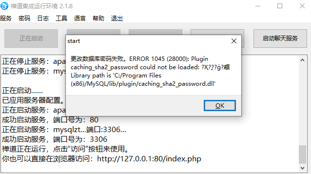 38004禅道安装,修改该数据库密码,提示更改失败已解决