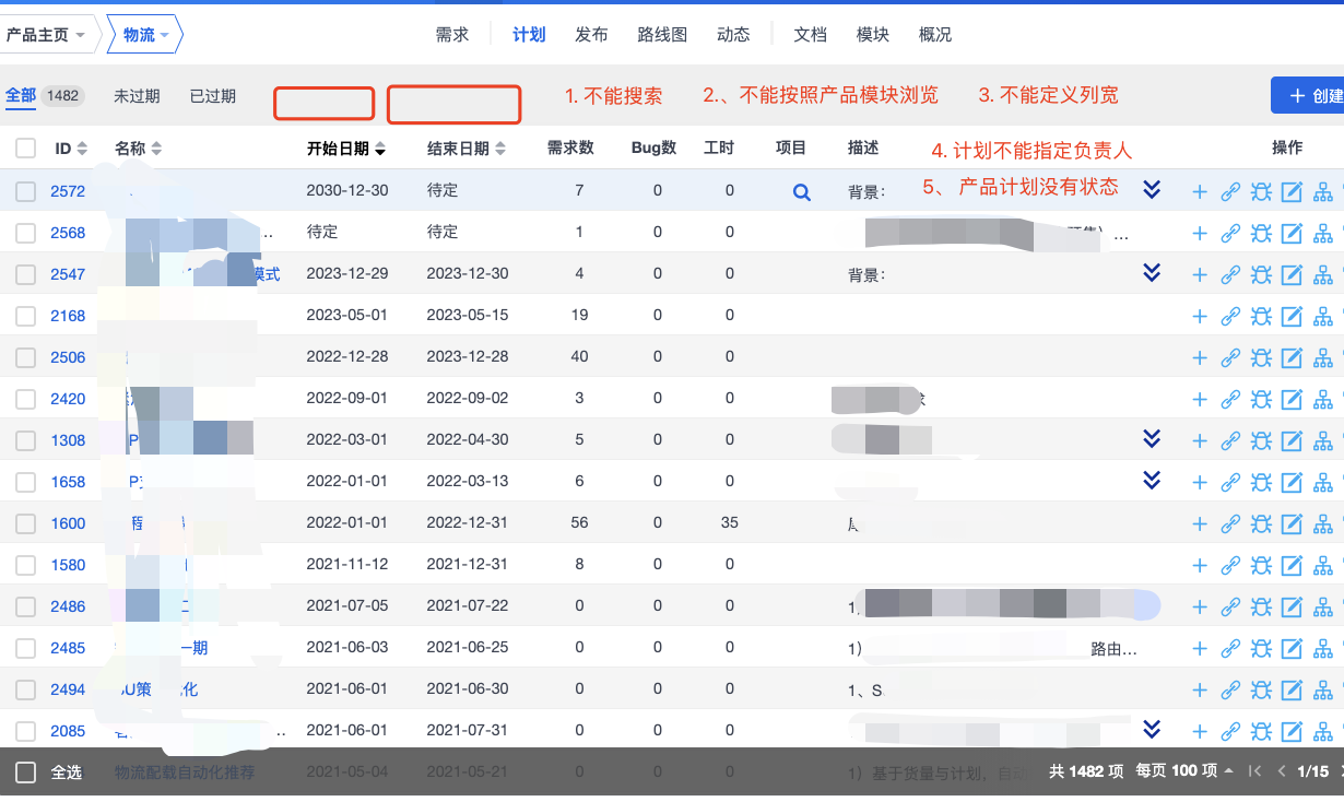 产品下面的计划页签下功能太简单了,建议增加一些筛选,过滤,排版方便的的功能,见下图已解决