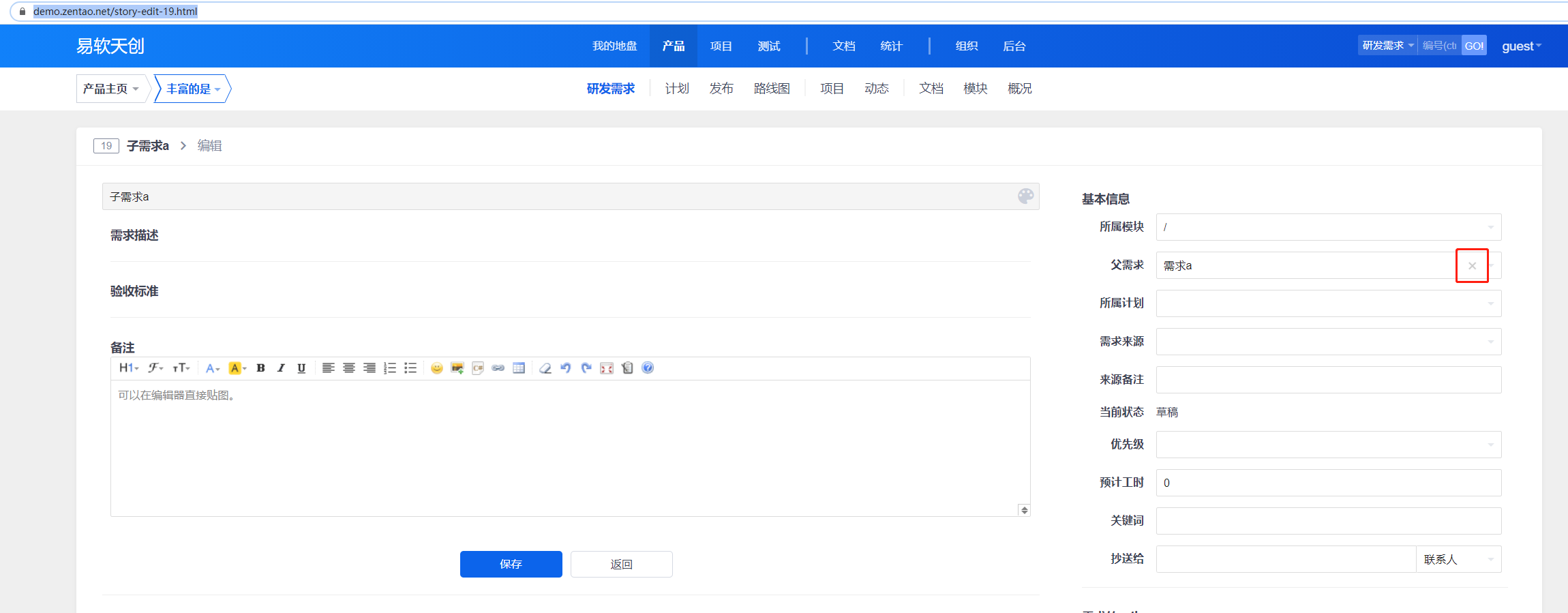 禅道开源版12.5.3, 我编辑一个需求的时候误选了一个父需求,保存了。现在想取消都不能取消,父需求列表里没有空给我选,只能换其他需求,请问怎么办? 另外,这个父需求被别的需求关联后, 这个父需求本身变得不能变更内容了,怎么办?