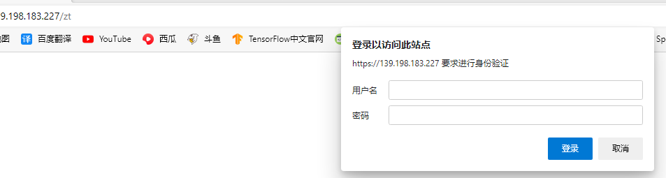 在windows server 2019环境安装15.0版本,本地访问正常,外网访问提示要求身份认证,(端口已开放)已解决