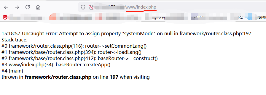 Attempt to assign property "systemMode" on null in framework/router.class.php:197已解决