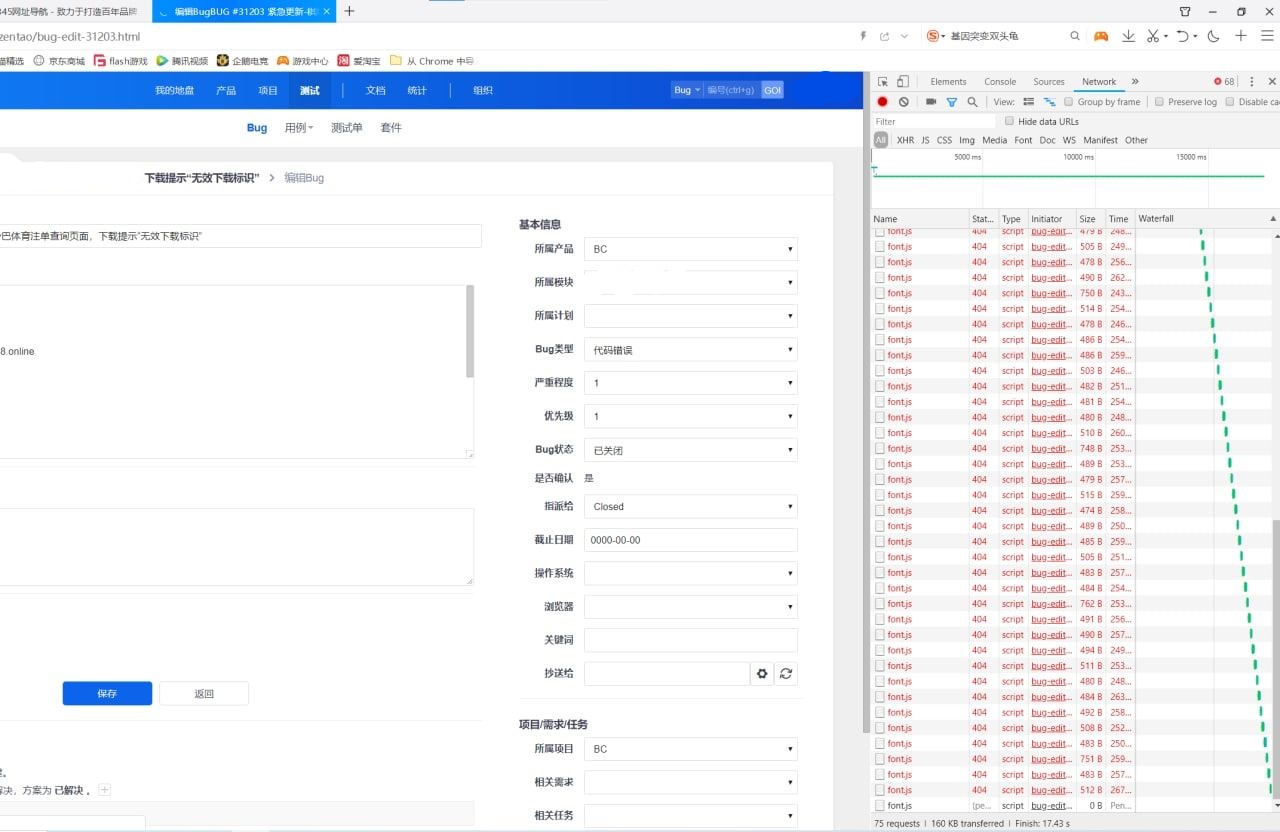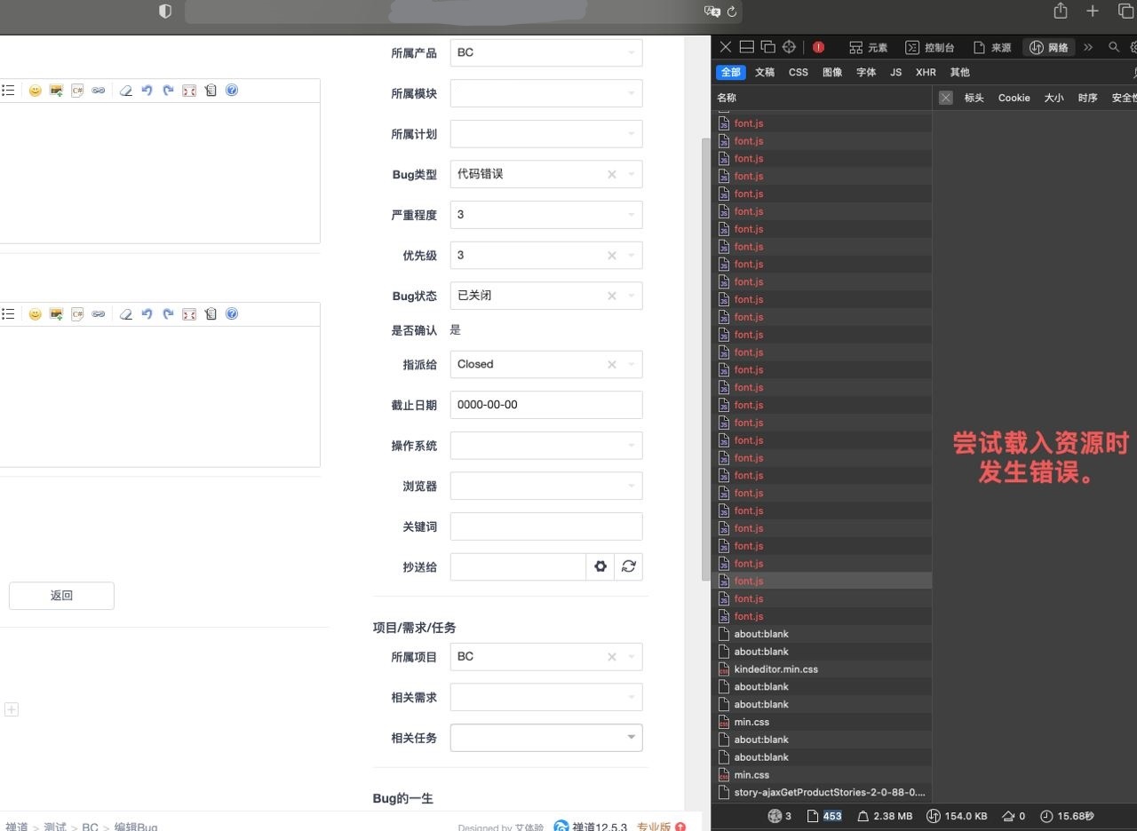 11.4.1/12.5.3版本 在bug项目里面进行编辑时会疯狂请求font.js文件,这个文件目前是404状态,导致其他文件请求慢已解决