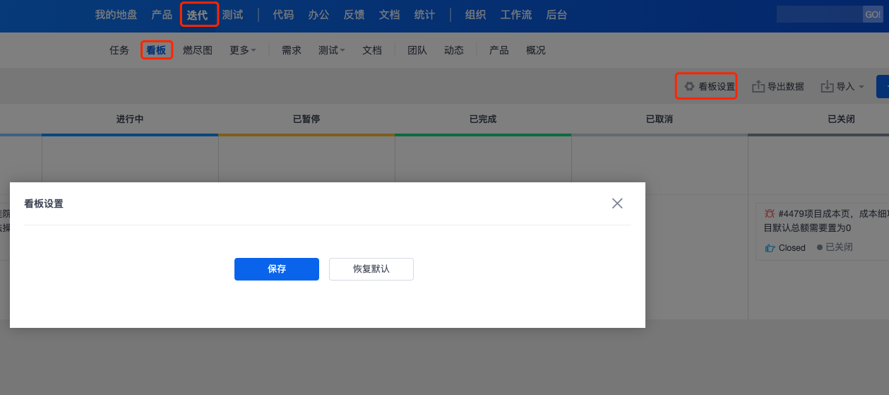 在迭代-看板-看板设置中,点击进去是空白的怎么回事?
