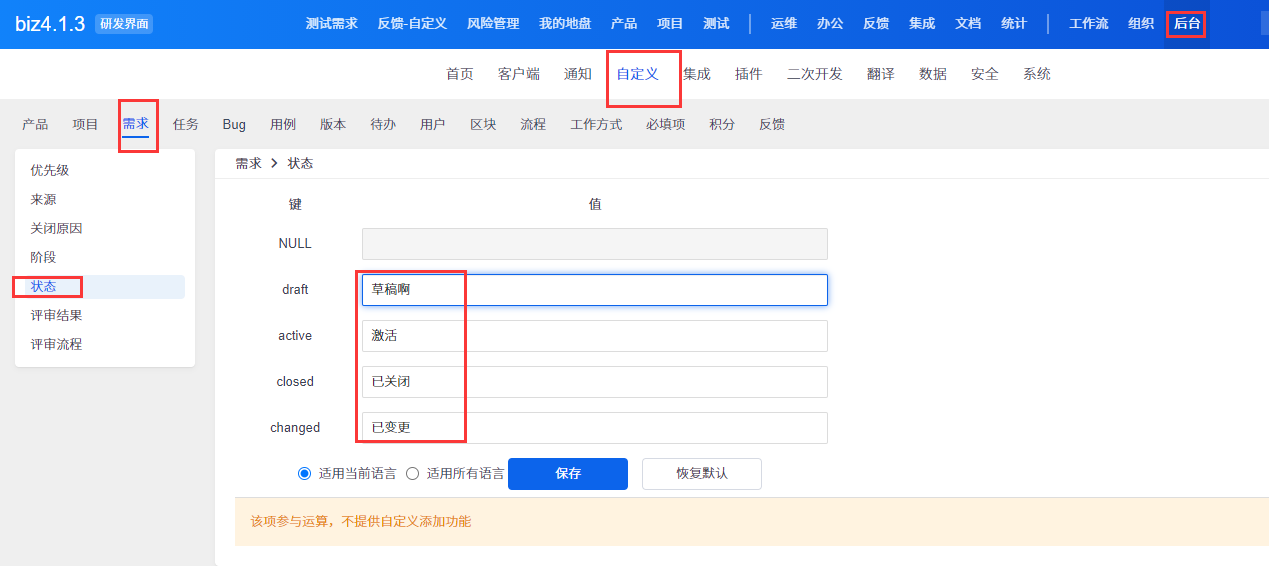 需求状态名称是否可以自定义?怎么自定义,可以自定义几个状态?已解决