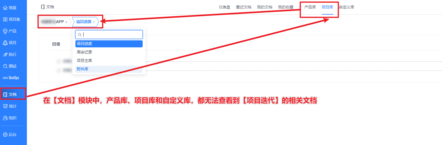 诉求2:【文档】模块中,不能查看“迭代”项目文档,通过【执行】进去查看“文档”,路径有点深,不好日常使用。