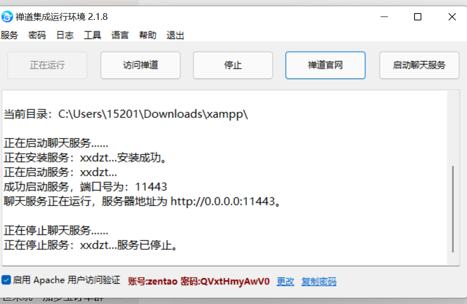⛄ 1、控制面板页面左下角apache访问验证取消一下沟通,重新访问禅道看下。 ![]() 2、取消勾选之后如果还有问题,可以可以打开debug,查看一下报错日志 (1)xampp/zentao/config/my.php 中debug的值改成true (2)重新操作一下有问题的页面 (3) 查看日志 /xampp/zentao/tmp/log/文件中php开头的今天的文件有什么报错。注:不要找sql开头的文件。 3、可以加一下左上角的商务联系方式,商务邀请进群后沟通。 |