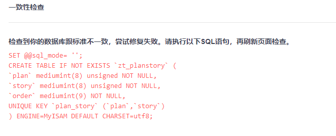 开源版禅道12.4.3 通过源代码包升级至15.7 出现一致性检查问题,怎么处理已解决