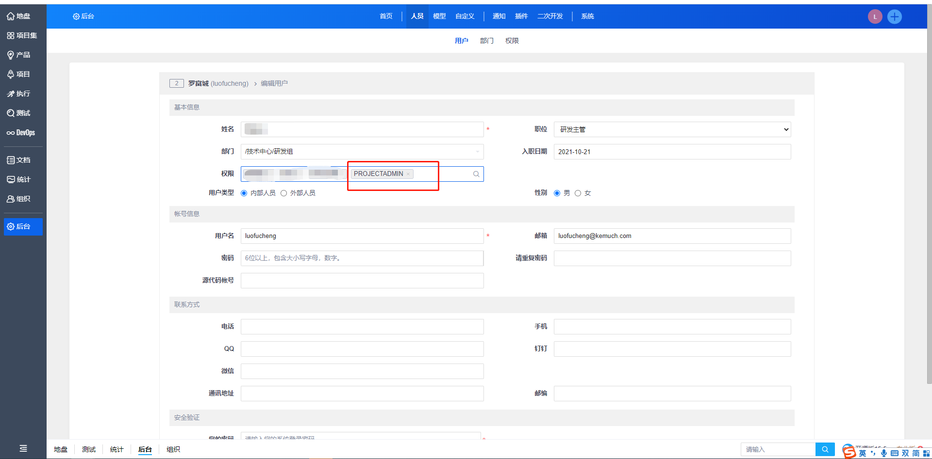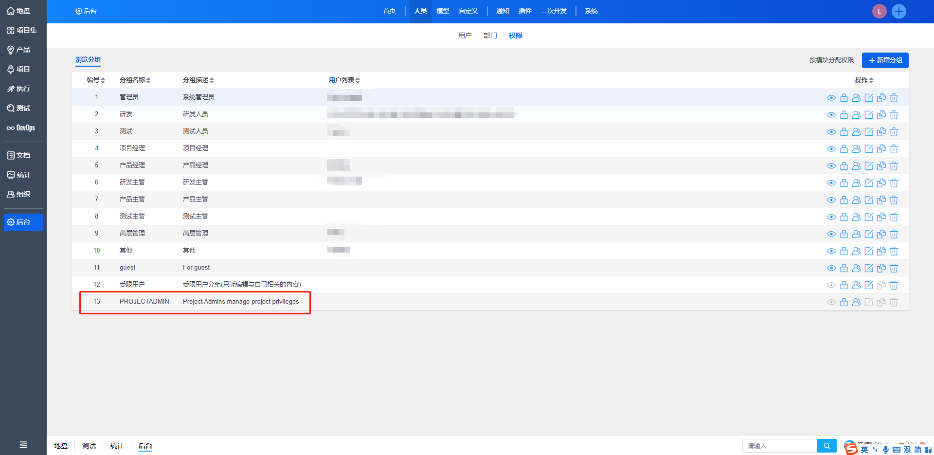 在用户权限处发现多了个权限组:PROJECTADMIN