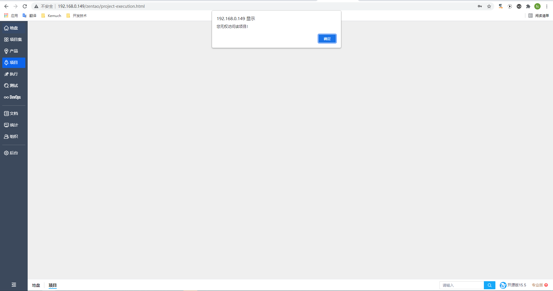 将一个项目删除后,删除项目的用户打开项目视图提示,您无权访问该项目;