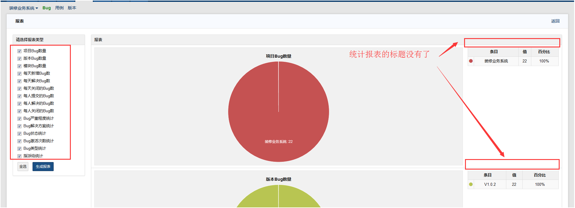 禅道8.0版本bug报表表格上方怎么不显示标题已解决