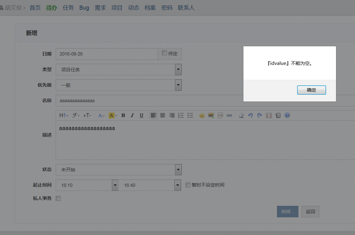 选择类型-项目任务后,名称的text消失了,再刷新界面会出来,但是保存不了了,提示idvalue为空