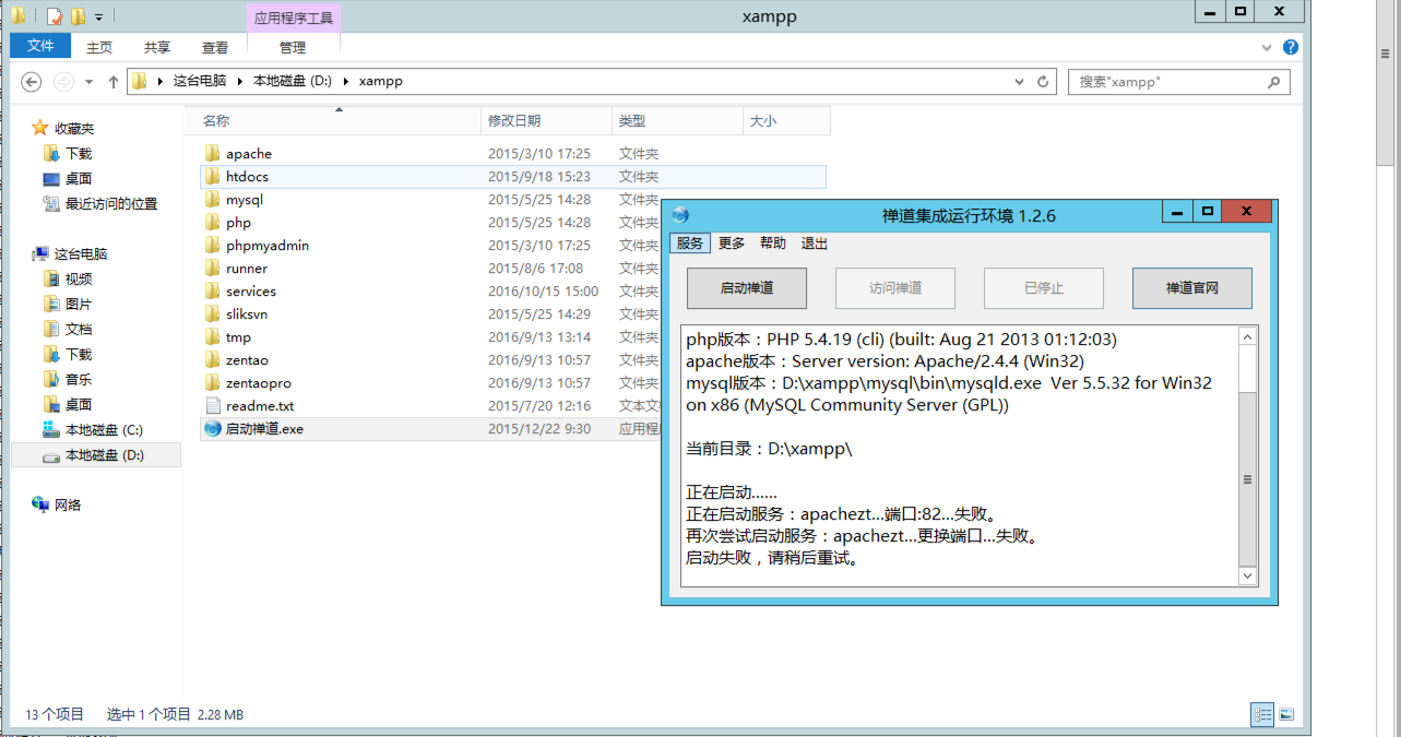启动services文件夹下的install.bat,可以启动mysql,但启动不了apachezt