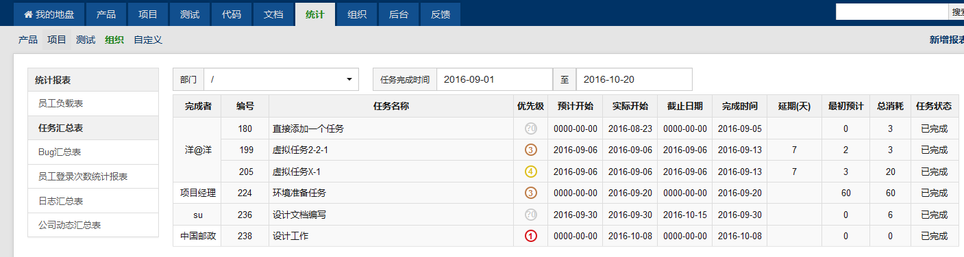石洋洋2016-10-20 11:34:00 任务完成就不会提示超时了,专业版(收费,需要可以联系 QQ: 1492153927)有任务汇总表可以统计: