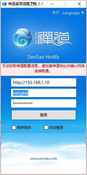 域名可以直接访问并打开禅道,但用桌面提醒工具的时候,就报上面的错误了。提醒工具版本2.1,直接进入禅道页面后,右下角的铃铛下载的。