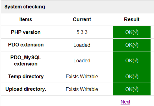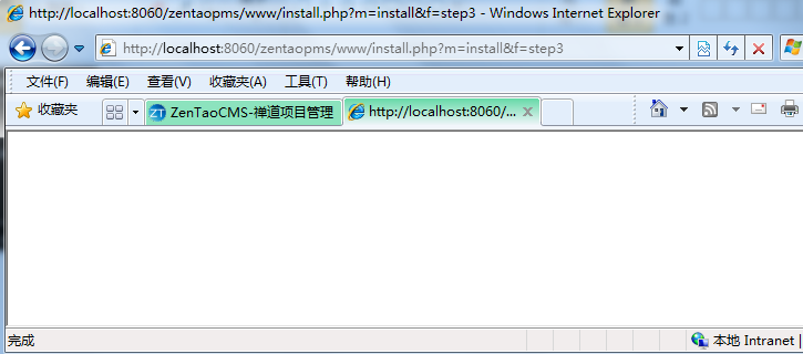 5: IE8浏览器,访问: http://localhost:8060/zentopms/www/index.php,点击"START INSTALL"后,出现如下画面