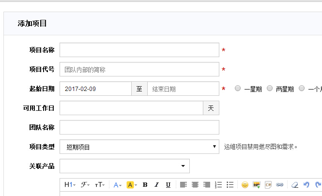 就是图里这些按钮:任务,需求这一排,点击后打开的都是创建项目页面(如下图)