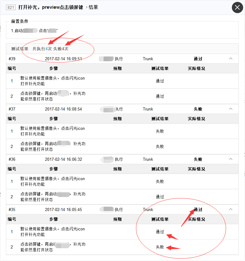 共两个步骤。1通过,2失败,用例显示通过。1失败,2通过,用例显示失败。