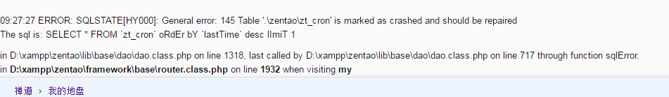 11:46:30 ERROR: SQLSTATE[HY000]: General error: 145 Table '.\zentao\zt_cron' is marked as crashed and should be repaired