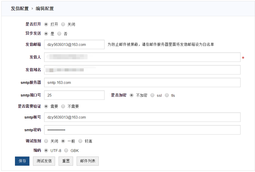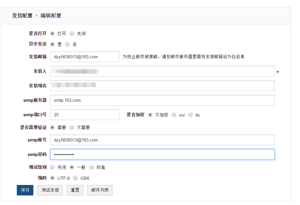 发信配置: