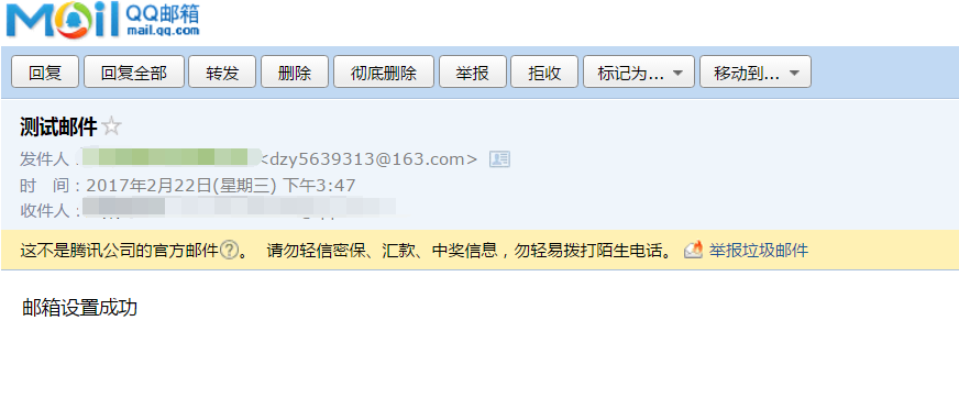 收到测试邮件: